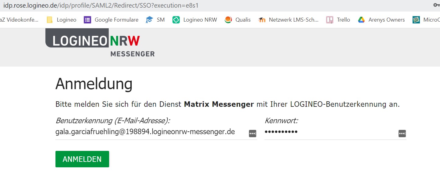 Anmeldung über den BrowserGehe auf die folgende Seite: https://[SCHULNUMMER].logineonrw-messenger.de.